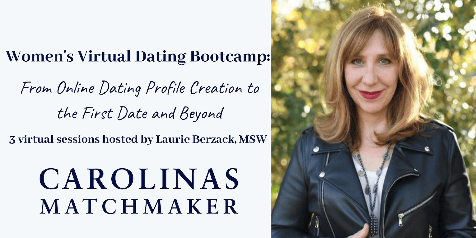 For my own purposes, I plan to reenter the mainstream via Carolinas Matchmaker, Laurie Berzack’s, Women’s Virtual Dating Bootcamp.